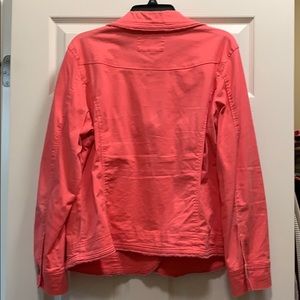 Ladies Jacket. Coral color denim like material. Size XL. Really cute details like buttons & pockets.