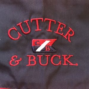 Cutter & Buck ladies jacket. Quarter zip, logo on left sleeve. Red and blue in color, side pockets. Excellent condition. From a smoke and pet free home.