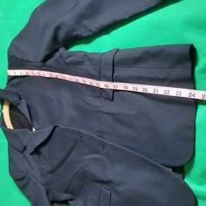 60% Polyester and 40% Rayon. See pictures for condition and details. Tag says size 18. Look at measurements
