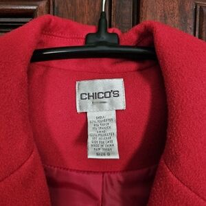 Red Chico's lined polyester fleece jack with cuffed sleeves. Non Smoker
