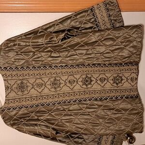 Maggie Barnes. Sz 1X. Gold tone. 51 polyester and 49 rayon. Very Good condition.