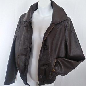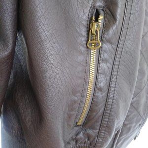 Ladies Jacket XL, Zip Bomber, Brown Faux Leather