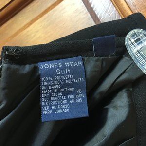This is a Jones Wear Suit Skirt that is classic! It is a black, Pencil (straight) lined skirt. It has a kick pleat in back. Goes well with the Jones Wear champagne brocade jacket. (sold separately.)