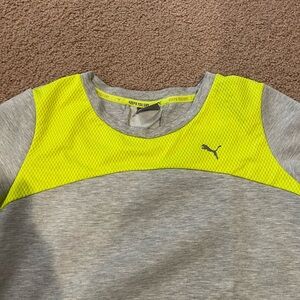 Ladies PUMA Damen Transition Crew Sports Top, long sleeve , size Medium (size is smaller than the actual size), with safety yellow accent, with thumbholes, cotton/ elastane material. Preloved, in excellent condition. #puma #sportstop