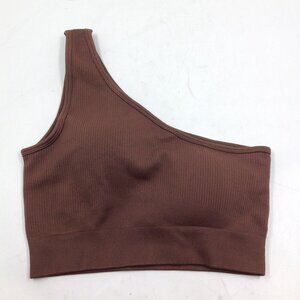 Womens One Shoulder Ribbed Padded Cropped Activewear Tank Top Bra Brown Size Small