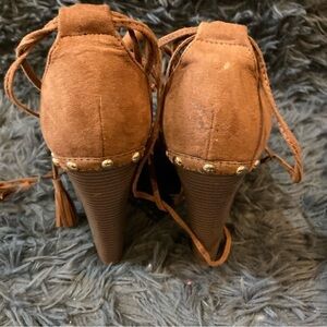 Ladies Just Fab Brown Cut out Wrap Around Studded Wedge Size 7
