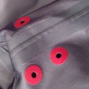 Crisp, clean, sharp. I wish I could wear it. Lol beautiful Orange ladies About light cotton has 3 layers. Each underarm has 3 tiny air holes. Just a great jacket. New with tags, never worn, smoke-free pet-free home. PLEASE THIS JACKET IS A BEAUTIFUL ORANGE. NOT RED !