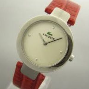 Brand Lacoste Model-1.6100 L.3Product form round Dial glass type mineral crystal Diameter of the box 27.9 milli metersThickness of the box 7.2 mm Belt material Skin Color of the strap multi colored Dial color White Movement Quartz