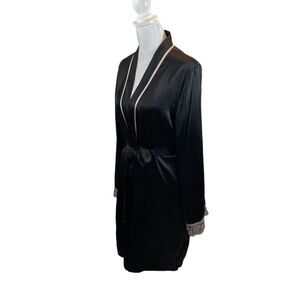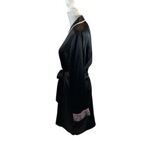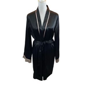 Ladies Linea Donatella Brand Black Robe with Pink Embroidery on Sleeve Cuffs S/M
