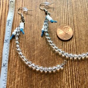 * Ladies Long Clear Beaded Dangle Earrings, Handmade