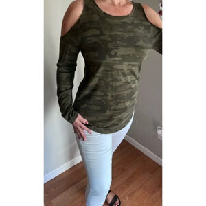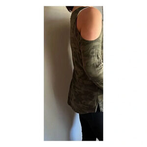 Ladies Long Sleeve T-Shirt Camo Cold shoulder top by Sanctuary Size Medium
