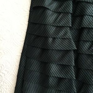 Dark green and purple diagonal striped sleeveless ruffled silk blouse with exposed zipper