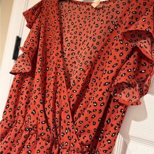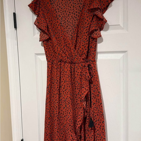 Ladies Medium Rust Colored, High-Low Leopard Print Ruffle Dress 👗