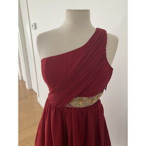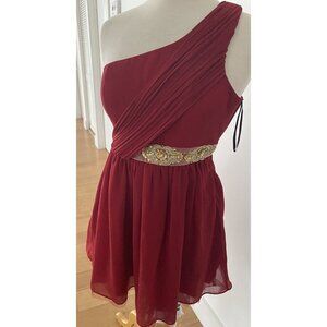 Ladies Modcloth Minuet One Shoulder Red Gold Sequin Mini Dress Sz S