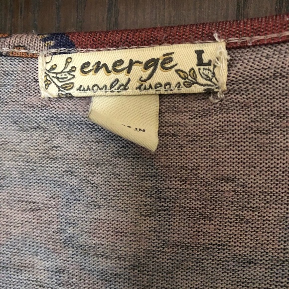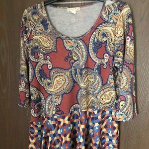 Soft and comfortable ladies’ shirt with two trendy patterns. The shirt is a size large but is stretchy.