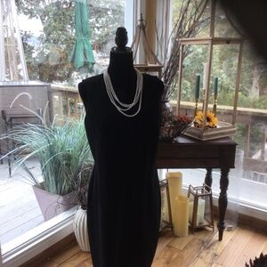 RETIREMENT sale, cleaning out my closet. Lots of Ann Taylor and Chicos clothing. This is a NWT lined black wool gabardine dress. Sleeveless with modest”v” neck, zipper back