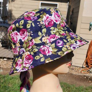 Ladies Navy Blue Flower BLING Bucket Hat NEW