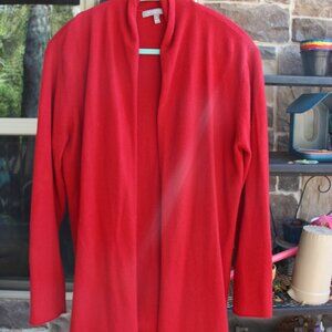 Beautiful red Nieman Marcus red cashmere sweater size XL. It is in good condition, has a shawl collar and open front (no buttons). Great red and great for holidays.