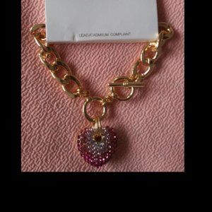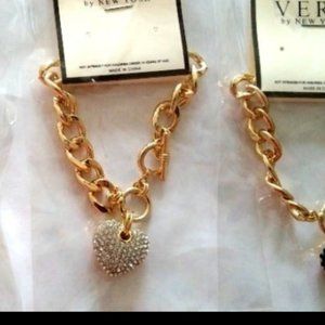 Ladies Nice Holiday Birthday Gold Chain Link Heart Rhinestone Bracelets