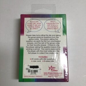 69 cards with 552 questions, rule card, 8-sided die, from 2017.