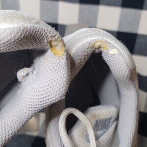 There some wear and tear (pictured); but shoes look pretty good and soles are in good shape.