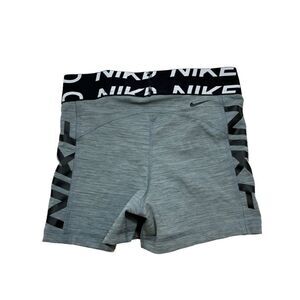 Ladies Nike Pro Dri-Fit Heather Grey Side Logo Compression Shorts Size Small