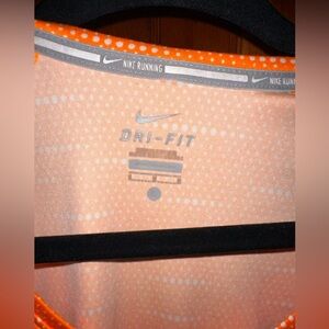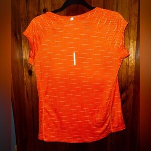 Orange vneck running tee, size large, reflective logo, smoke free home