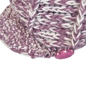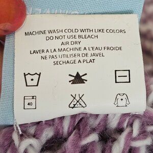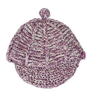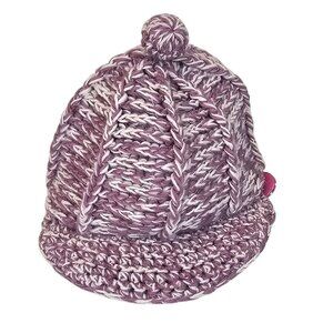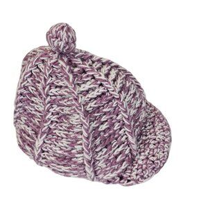 Ladies OS Fall Winter Warm Cozy Cable Knit Wool Riding Cap Purple White Pom Pom