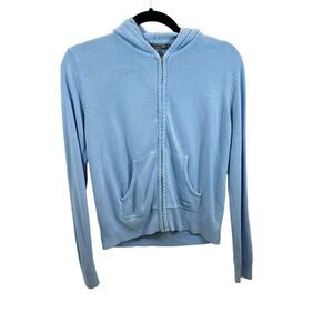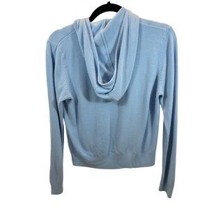 Ladies Oleg Cassini Sport Blue Knit Hooded Cardigan Sweater Petite Large
