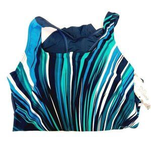 Ladies One Piece Open Back Padded Swimsuit Women's Size M Blue Green