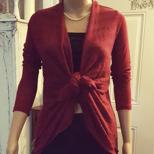 'Red Camel" , open front sweater can be tied worn loose. Pretty deep rose color. Nice, great condition, Size XS. long sleeves.