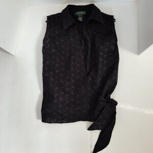 Ladies Petite SZ PS Lauren Ralph Lauren Black Eyelet Sleeveless Top