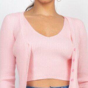 Two-piece set: ribbed crop tank top and matching cardigan