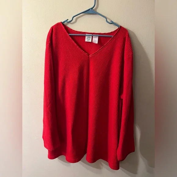 Ladies plus size top. Red, fleece like material. Size 26/28W. No tears/stains.