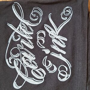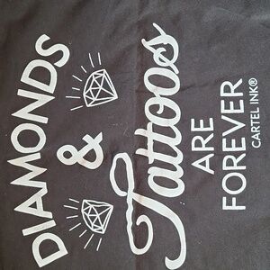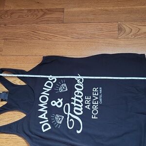 Black racerback tank with white lettering by Cartel Ink.