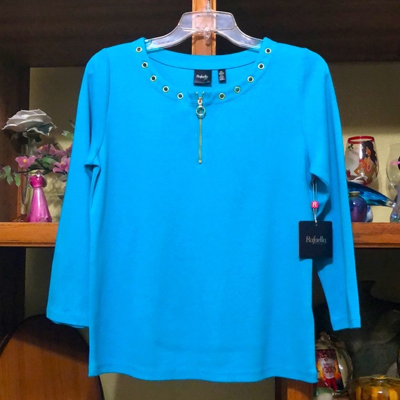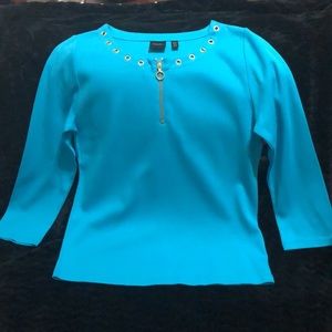 Ladies Rafaella Zippered Front Blue Top-NWT