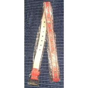 Ladies Red Studded Cosplay Punk Leather Style Belt Size 32