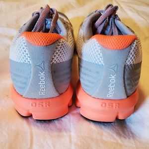 Ladies size 7 OSR Reebok sneaker; gray/white/neon orange; nearly new