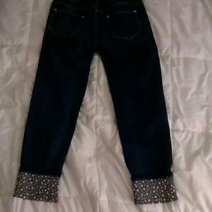 These jeans are in great condition! They are glamorized with beautiful rhinestones all along the ankles. Buy now before it's too late :)