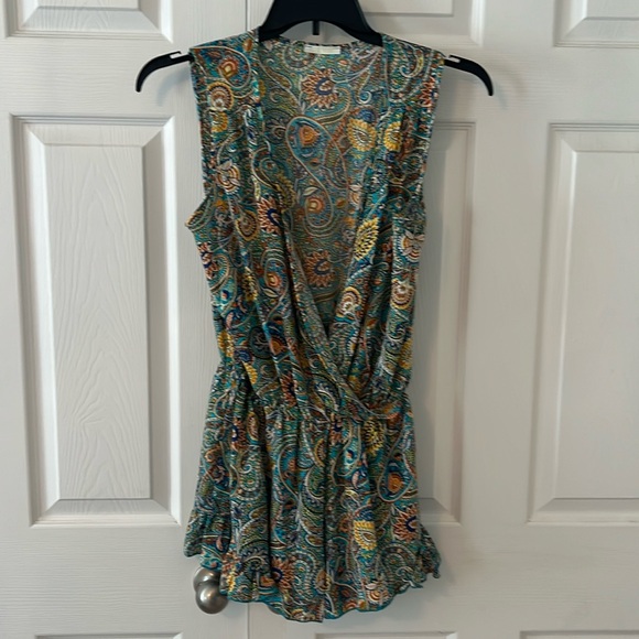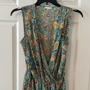 Beautiful romper by Olive Tree. Looks great with a form fitted tank underneath. Flounce at legs is super flirty and flattering. A must for summer weather! Excellent condition. No flaws. Size medium.
