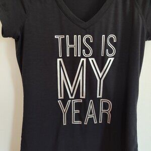 Ladies SZ S Ideology Black Graphic Workout T-Shirt "This is My Year"