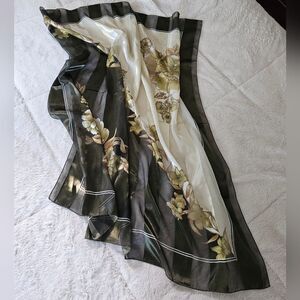 Vintage Beautiful Flower Pattern Scarf ‘80s, Silk Colored Shawl, Russian Women Scarf, Red and White Shawl