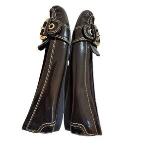Ladies Shiny Brown Nickels Soft Flat Shoes - Ariana- Size 9.5 Womens Loafers . Gently used. A few cuffs on side and front . Shown in photo.