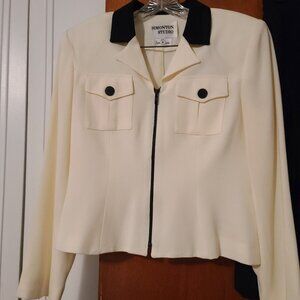 Ladies Simonton Studio For Neiman Marcus Off White /black Skirt Suit Size 6