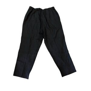 Ladies Size 16 Black Linen Pants Floral Embroidery Pull On Elastic Waist Zip
