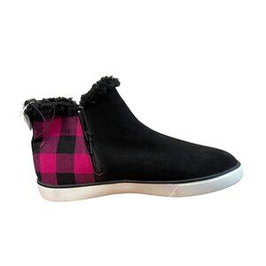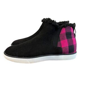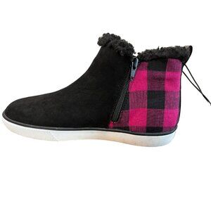 Ladies Size 6 Black Pink Plaid HighTop Sneakers Faux Fur Flat Bootie Foam New
