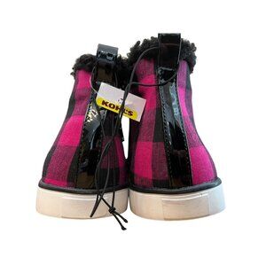 Ladies Size 6 Black and Pink Plaid HighTop Sneakers Faux Fur Flat Bootie New