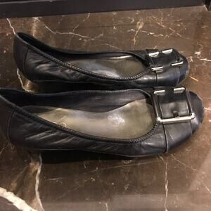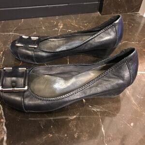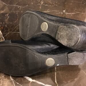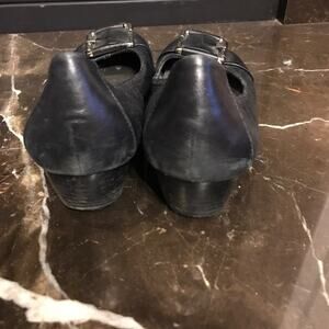 Ladies size 7 black flats. Leather upper. Made by Me too.