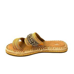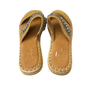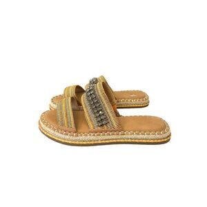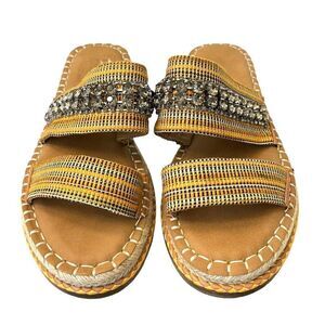 Ladies Size 7.5 Jeweled Sandals Open Toe Comfort Multi Color Fabric Straps Shoes