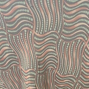 muted Multi-colored print in grey, brown, tan, green.